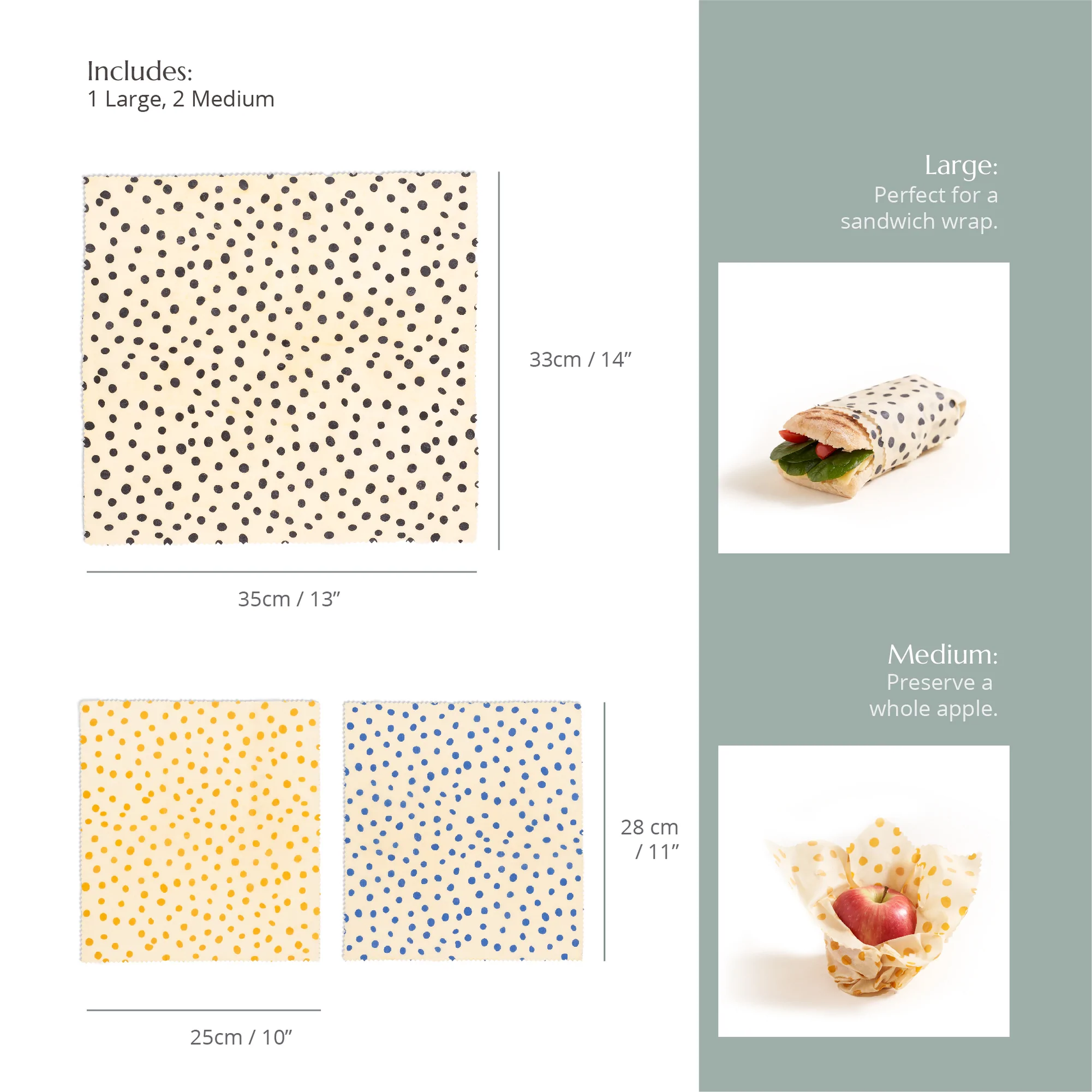 Bivoks madwraps - Prikket - 3 stk. (2x mellem, 1x stor)