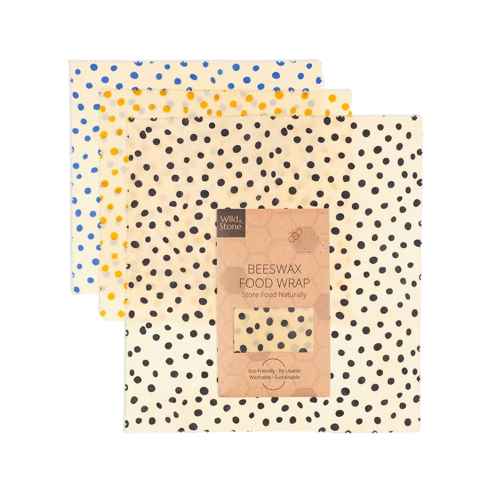 Oplev de fuldt ud bæredygtige og naturlige genanvendelige bivoksindpakninger fra Wild & Stone. Vores bivoksindpakninger er fri for giftige kemikalier og lavet med 100% GOTS-certificeret bomuld, naturlig bomuld, organiske farvestoffer, bivoks, jojobaolie og træharpiks.