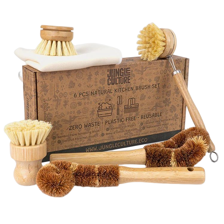 Den naturlige grovhed af sisal- og kokosfiberbørster giver en elegant, ergonomisk og skyldfri måde at skure og skrubbe dine gryder, pander og bakker på, mens vores organiske hamp- og bomuldsfiber-renseklude er perfekte til skånsomt at vaske skrøbeligt glas op.
