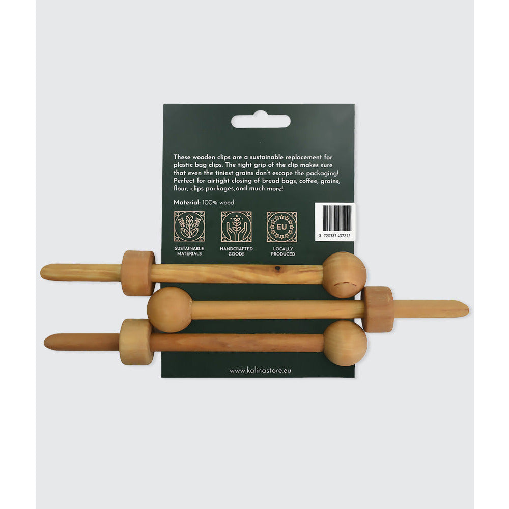 Disse plastfrie madpose klips er en bæredygtig erstatning for plastikpose klips. Klipsens stramme greb sørger for, at selv de mindste korn ikke undslipper poserne! Disse klips er velegnede til lufttæt lukning af brødposer, kaffepakker, melposer, kerner, chips mv.