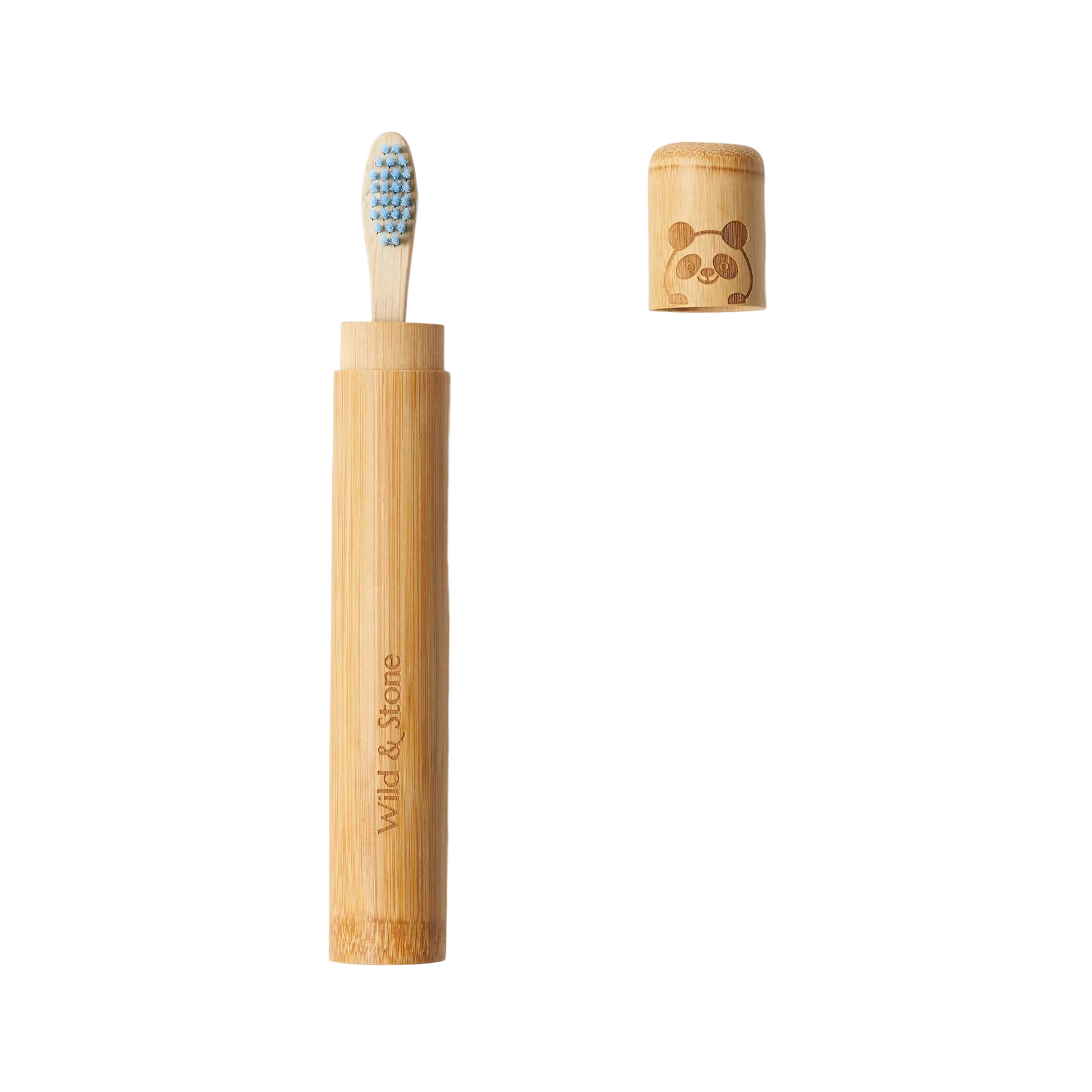 Wild & Stones rejseholder til bambustandbørste vil beskytte din lilles tandbørste mod bakterier og snavs, holde din tandbørste ren, mens du er på farten og rejser, eller bare opbevarer den hygiejnisk derhjemme. Disse FSC® 100 % certificerede bambusetuier med et sjovt Panda-design er ideelle til at gøre det sjovt at børste tænder.