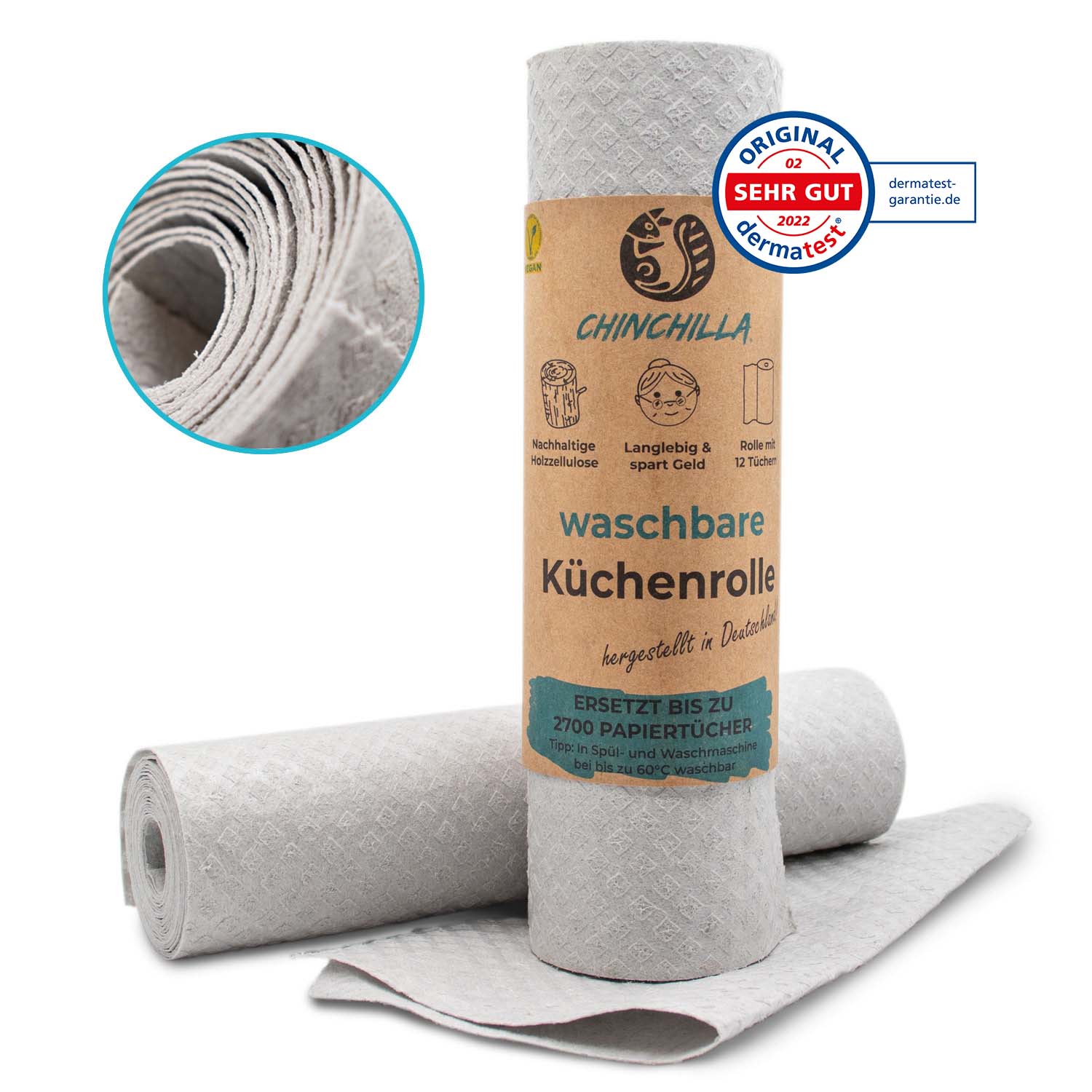 DERMATEST MEGET GOD OG LAVET I TYSKLAND: Den vaskbare husholdningsrulle er fremstillet i Tyskland efter de højeste kvalitetsstandarder og er blevet tildelt Dermatest-seglet "Very Good". Træcellulose og bomuld fra bæredygtig dyrkning - blød og fnugfri. OEKO-TEX certificeret. Vi pakker svampekludene i miljøvenlig naturpap - for mere bæredygtighed.